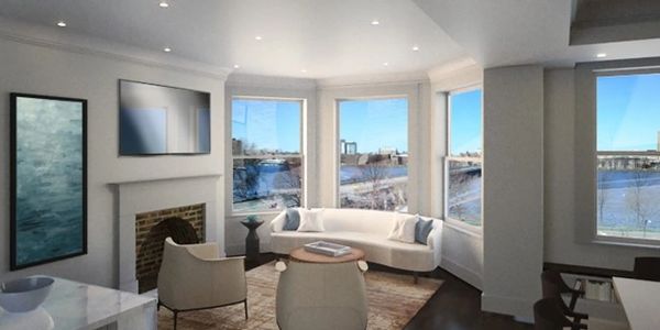 Designed by Stephen Martyak of Studiotyak, this beautifully renovated and expanded split-level 3 bed 2.5 bath penthouse unit located on the Northeast corner of Beacon St. and Mass Ave. with views of Boston, the Charles River, and Cambridge blends modern upgrades with historic appeal.